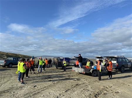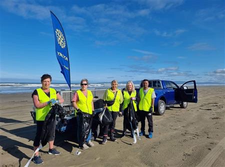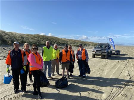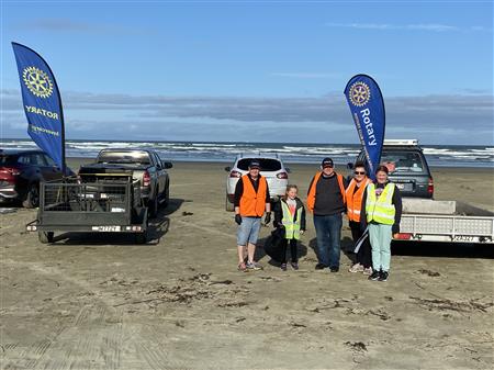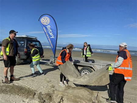 A combined clubs event had Rotary members taking part to clean up the coast line along the beautiful Oreti Beach.
