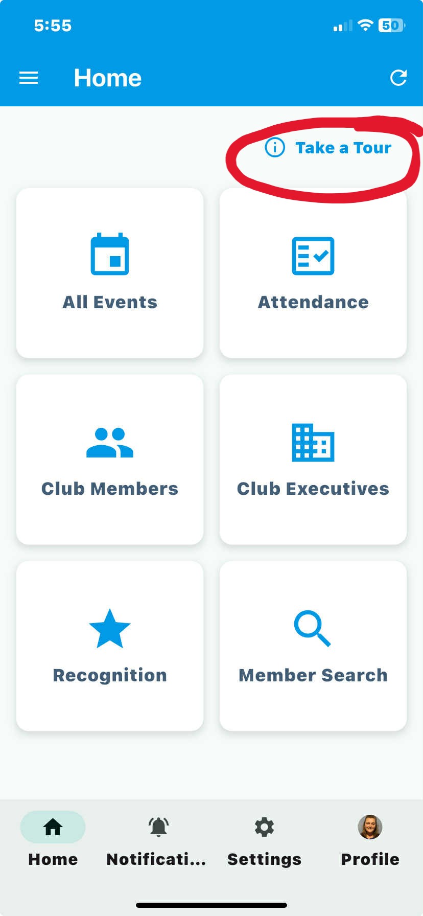 A helpful “Take a Tour” option is available in the top-right corner of the home screen to guide new users.
